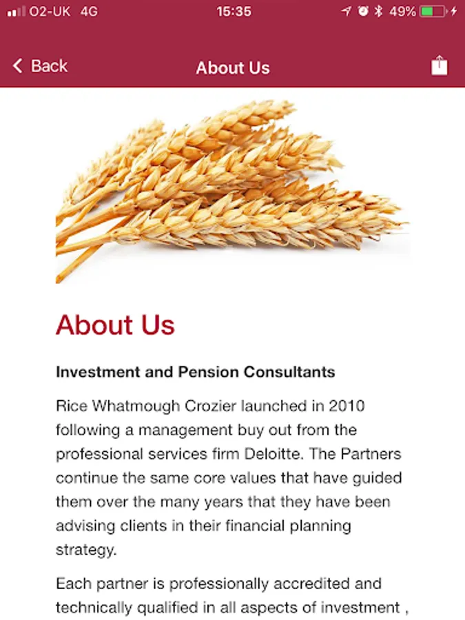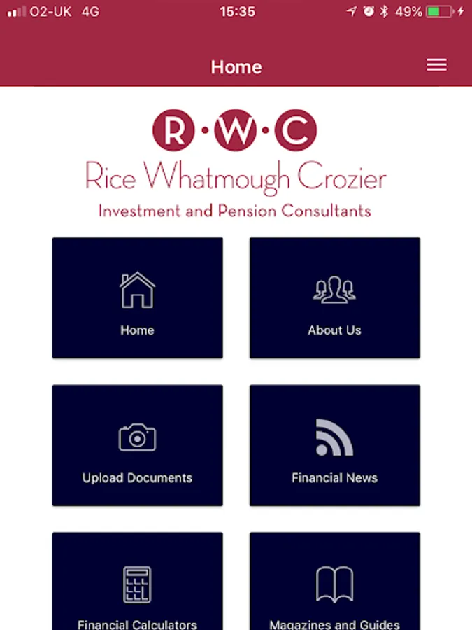 The Rice Whatmough Crozier app is an Investment and Pension Consultants application built for Rice Whatmough Crozier. The app features financial calculators, magazines, tax tables and contact details. This app allows our clients to upload supporting documents through the iOS camera function or from their photo library. The Rice Whatmough Crozier app comes with built in push-notifications enabled keeping our users updated with all the latest financial updates.
