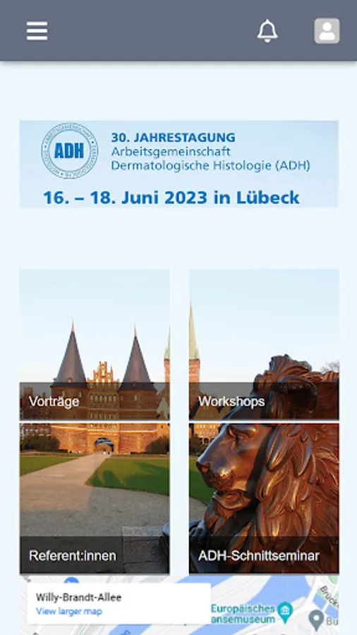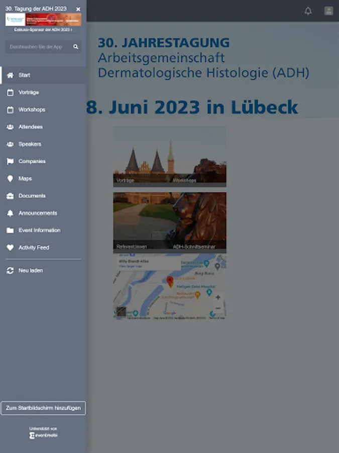In der Kongress-App zur 30. Jahrestagung der ADH 2023 werden ergänzende Informationen zur Veranstaltung geteilt und Sie erhalten über die App die Möglichkeit zur Teilnahme an Umfragen und Abstimmungen. Natürlich können Sie mit der App auch ganz einfach Ihren Besuch planen und sich online das Programm und die Aussteller ansehen. Die App ist der ideale Begleiter für Ihren Besuch der 30. Jahrestagung der ADH in Lübeck.