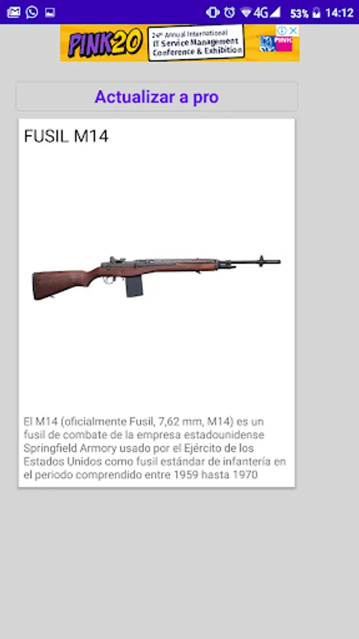 armeria is the application that will gather the information of the war weapons that have been used by humanity, as well as information about their country of origin and what is necessary to increase the level of knowledge of our users