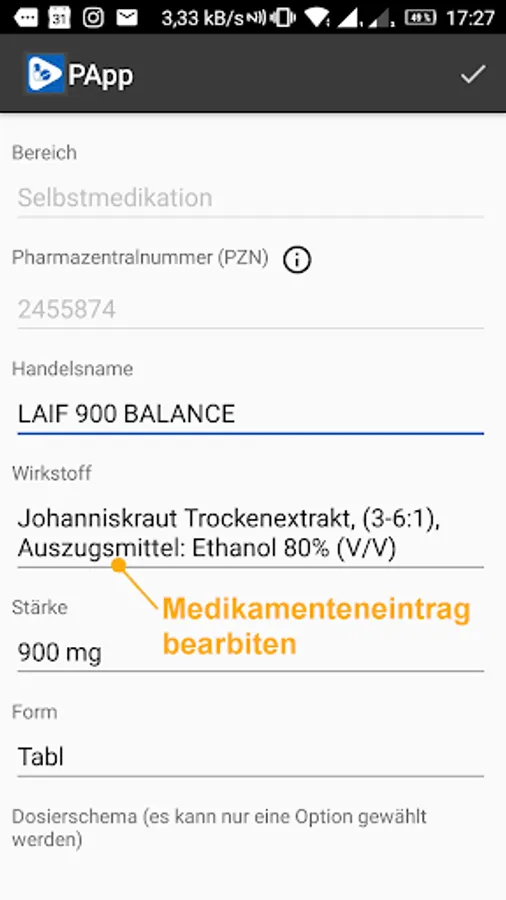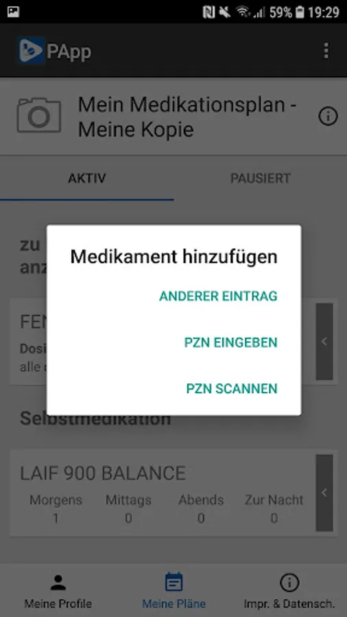 It may be useful to discuss any changes with your doctor or pharmacist. PApp saves all changes to your medication in a traceable manner in order to also support you when you next visit a doctor or pharmacy.