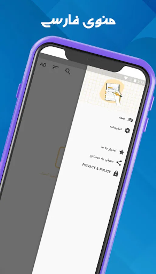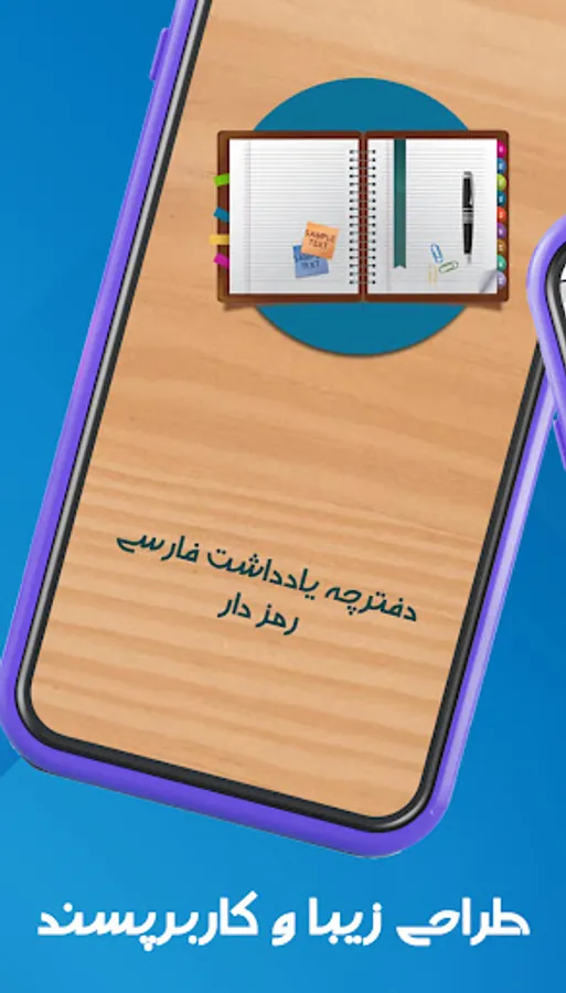 The simple yet practical design of the complete mobile Persian notebook application provides you with the ability to add checklists and text notes along with files, images and audio.