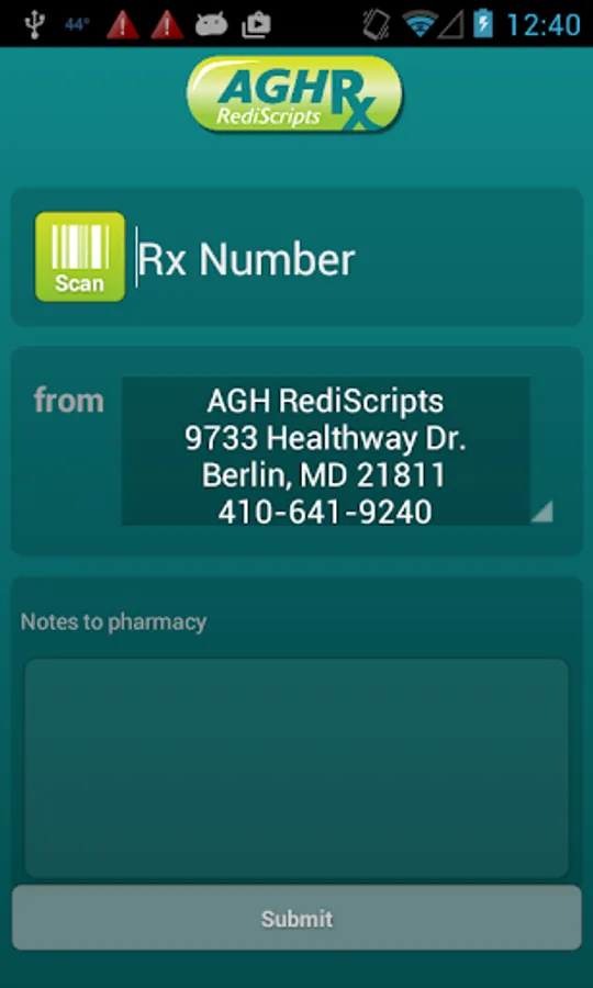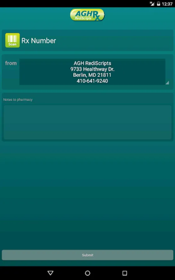 AGHRx RediScripts Mobile provides a one tap solution for refilling your prescriptions. Simply scan the barcode on your prescription bottle and watch as AGHRx RediScripts Mobile sends the request to AGHRx RediScripts Pharmacy at Atlantic General Hospital. If a barcode is not available you can also enter the Rx number for your prescription and even send a message directly to the pharmacy staff. Download AGHRx RediScripts Mobile today and get peace of mind that your refills will be waiting for you on your next visit to the pharmacy.