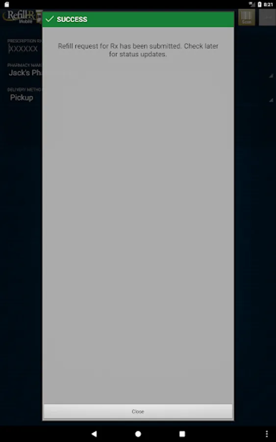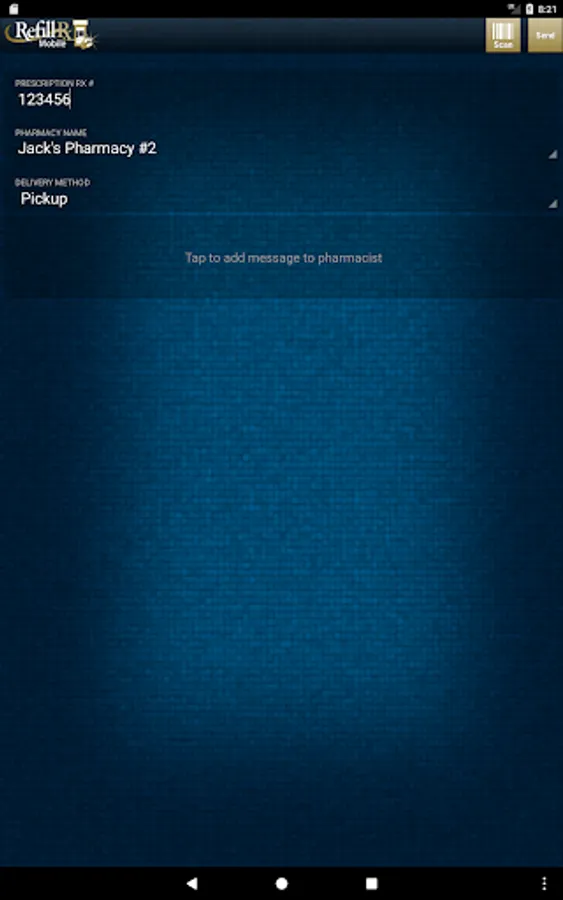 RefillRx Mobile provides a one tap solution for refilling your prescriptions. Simply scan the barcode on your prescription bottle and watch as RefillRx Mobile sends the request to your local participating pharmacy. If a barcode is not available you can also enter the Rx number for your prescription and search for your pharmacy by entering the phone number. Download RefillRx Mobile today and get peace of mind that your refills will be waiting for you on your next visit to the pharmacy.