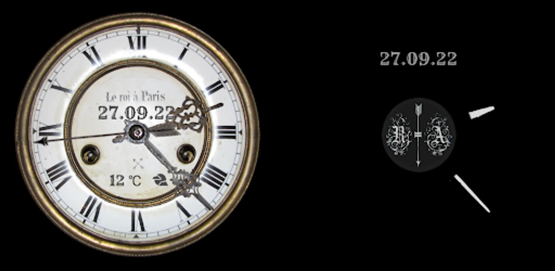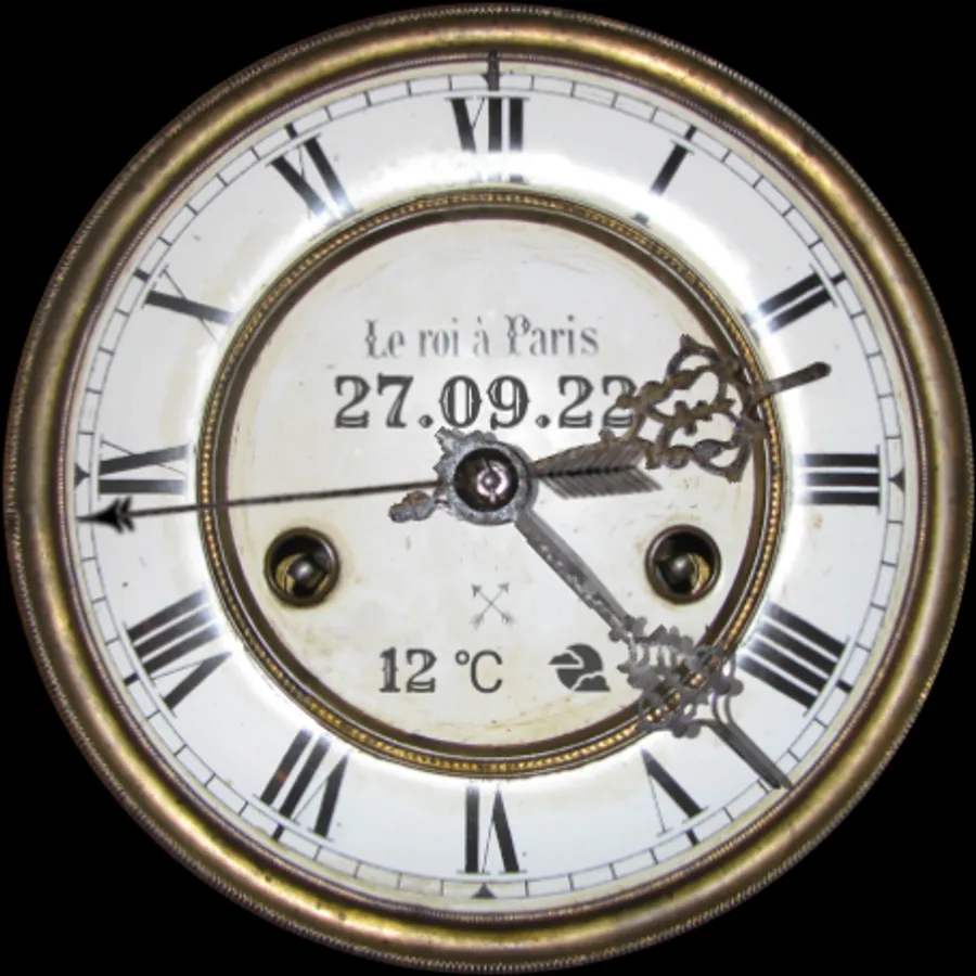 This watch face is based on a real vintage "Le roi à Paris" wall clock. Every detail of this watch face is reminiscent of this amazing watch.
