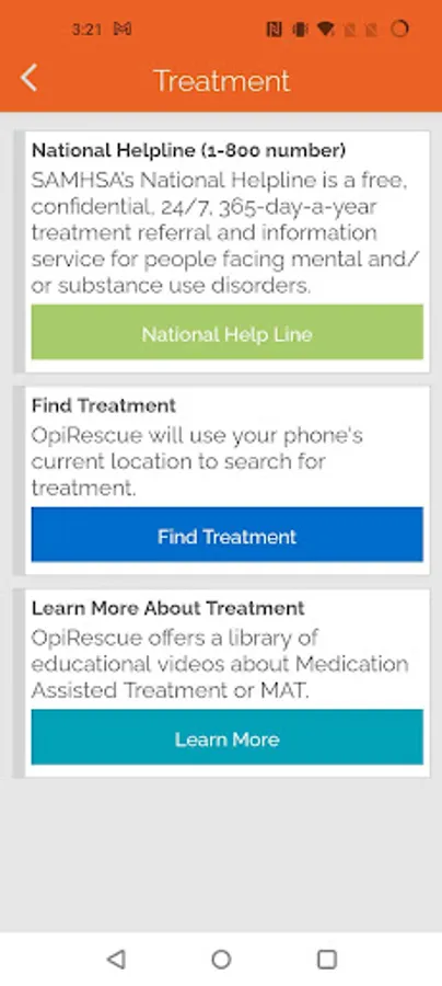 OpiRescue also has tools to quickly find treatment and Naloxone as well as to report reversals.