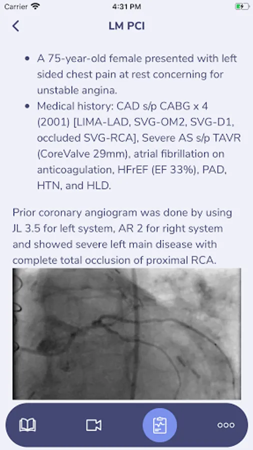 This app is an educational tool with step by step approach guided by illustrations and aminations to perform diagnostic coronary angiogram and percutaneous coronary intervention after implantation of trans-catheter aortic valve.