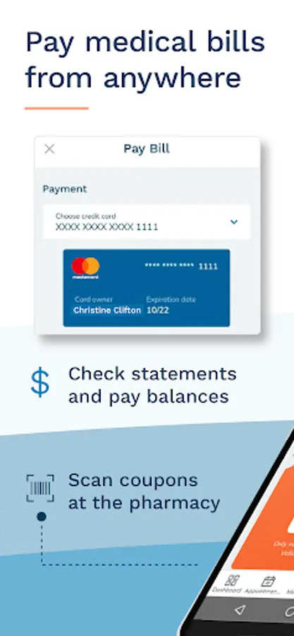 • Bill Pay - Never miss a medical bill; quickly and securely check statements and pay your outstanding bills from anywhere.