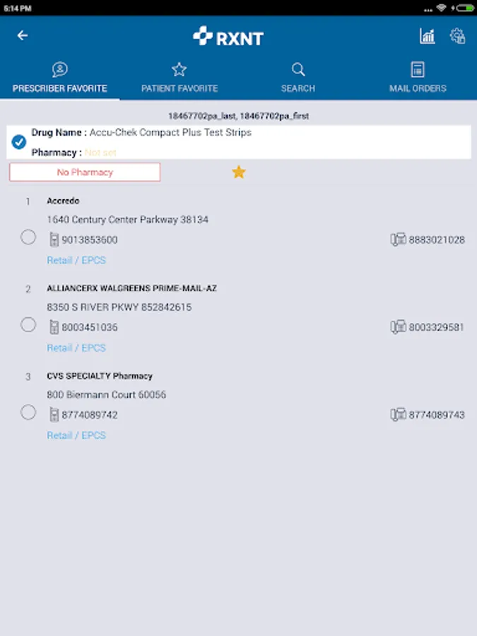 • Designate favorite and preferred pharmacies