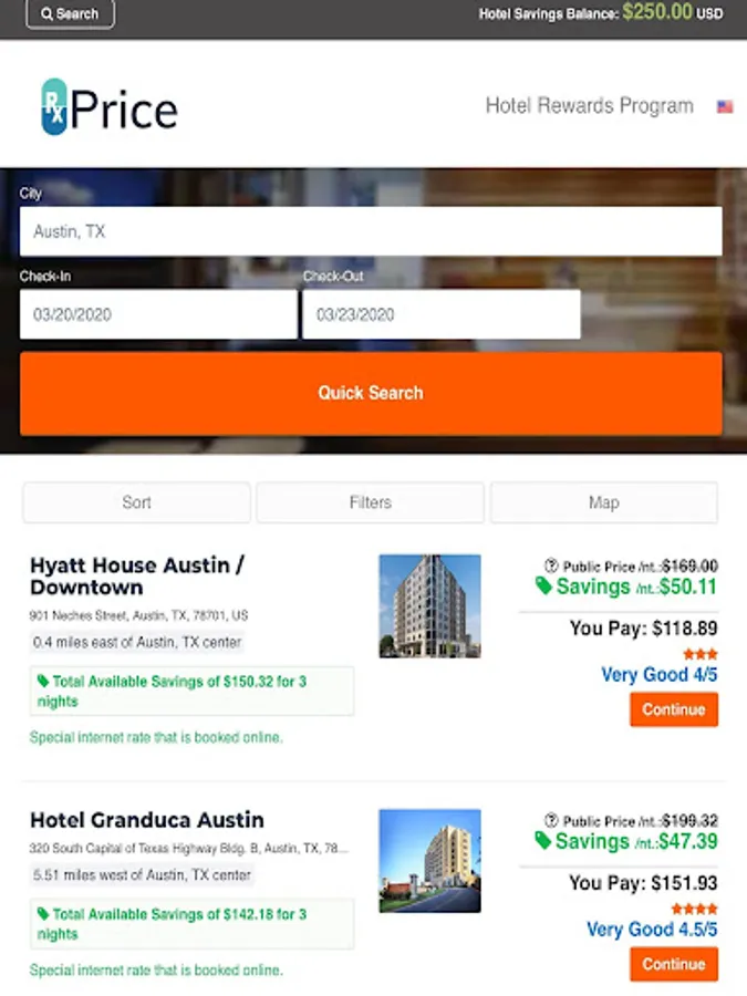 At Rx Price you earn RxPrice travel rewards for each discount drug item using your Rx Price Pharmacy Savings Card which can be redeemed for discount drugs at more than 650,000 hotels worldwide, car rentals from major brands, nationwide home stays, and resort rentals.
