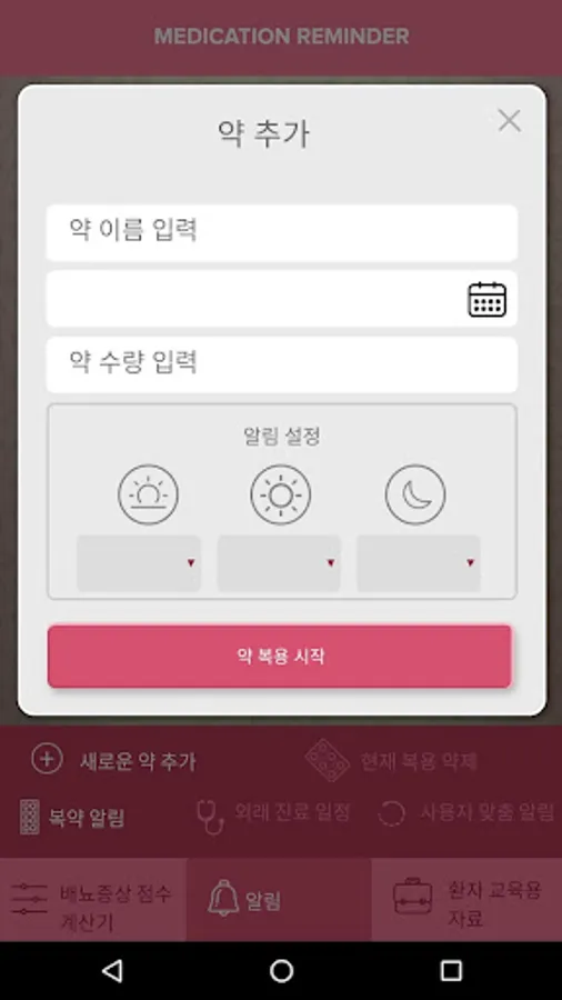 Allows user to set reminders for medication