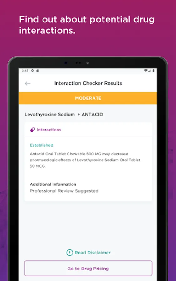 Search medications for potential drug interaction by typing in 2 or more brand or generic names.