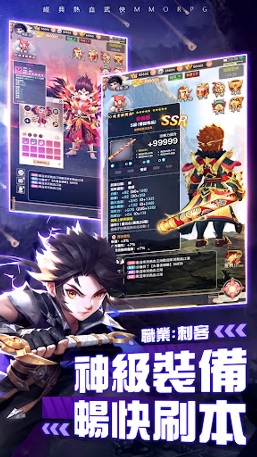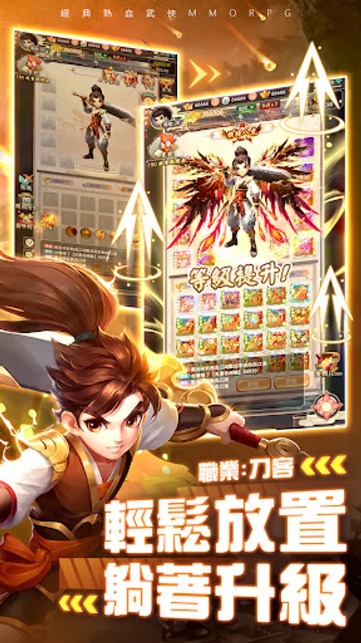 The vertical screen brings a new operating experience, freeing your hands to say goodbye to boring monsters and upgrades; you can also get experience rewards when you hang up offline, so you can easily and happily enter the rivers and lakes!