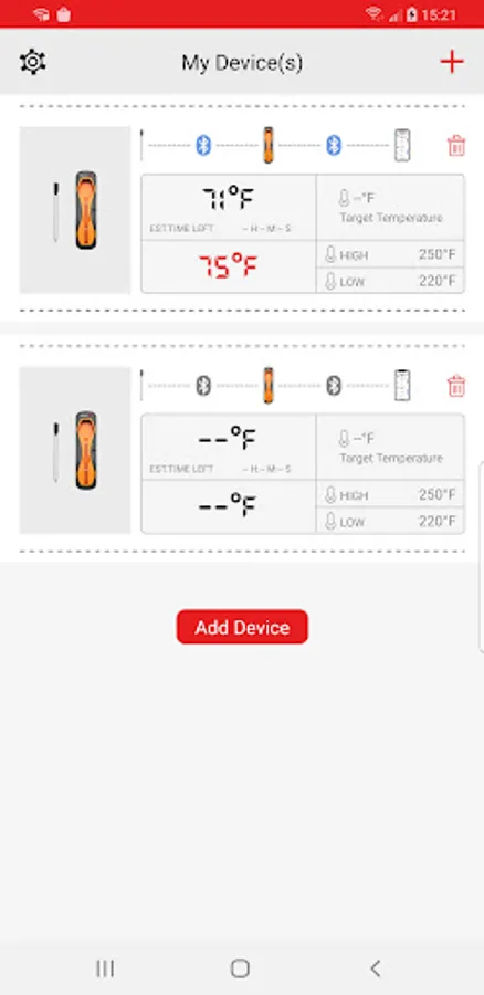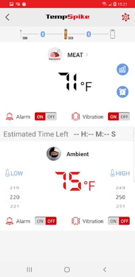 The app communicates with the device via Bluetooth, displays the grill temperature in real time, and allows you to set temperature alarms, statistical temperature change curves, etc.