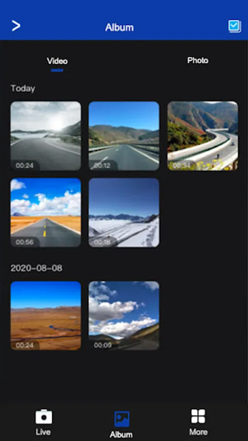Once connected you can access all the videos recorded by your dashcam stored on the micro SD Card which you can play back on your smartphone . Settings can also be adjusted via the settings menu in the app.