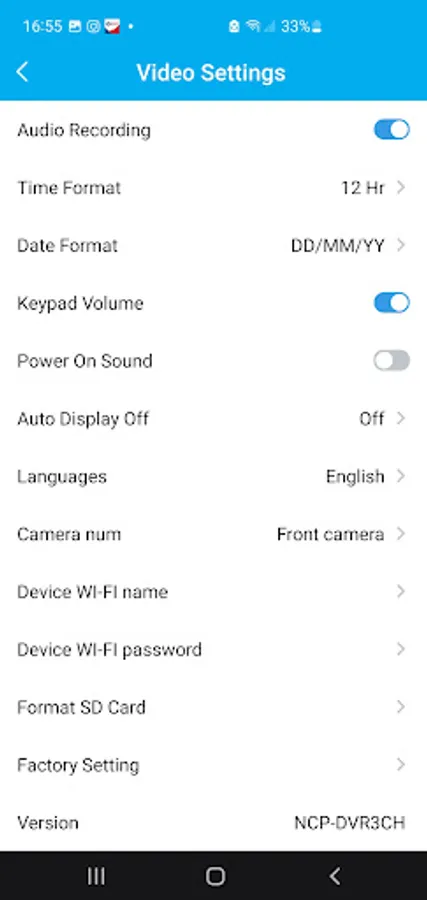 Connect first to your NCP-DVR3CH with your smartphone , Your dash Camera WiFi name would be NCP-DVR3CH_XXXXXX ,last 6 digits are unique to each dash cam ,then open the app to access your dash camera ,through the NCP-DVR3CH app, you can: