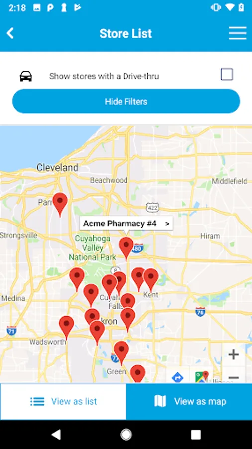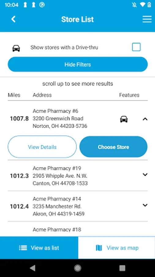 • Locate the closest Acme Pharmacy location via GPS or Zip Code search