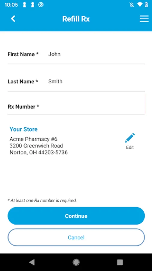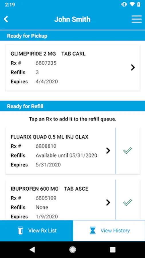 • Up to 10 prescription refills via barcode scan or Rx number entry