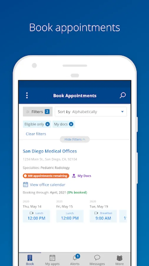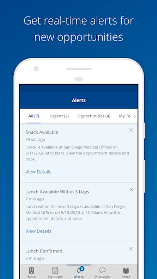 * Instant push notifications for available appointments with your target practices