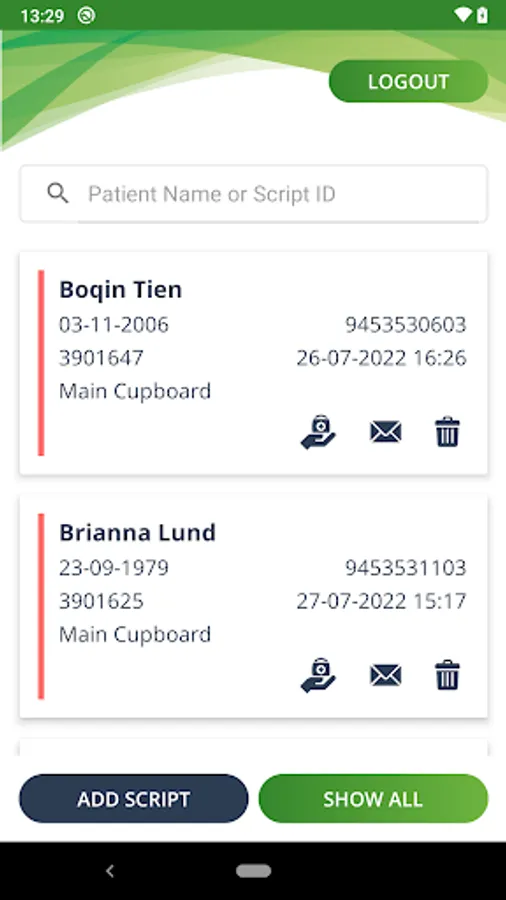 When patients come to collect, app users just search them on the app to quickly see where their meds are stored. Bags and meds that have not been collected in your expected time frame will be highlighted on the app and on the console in RxWeb, allowing you to chase up patients and reduce both losses and waste.