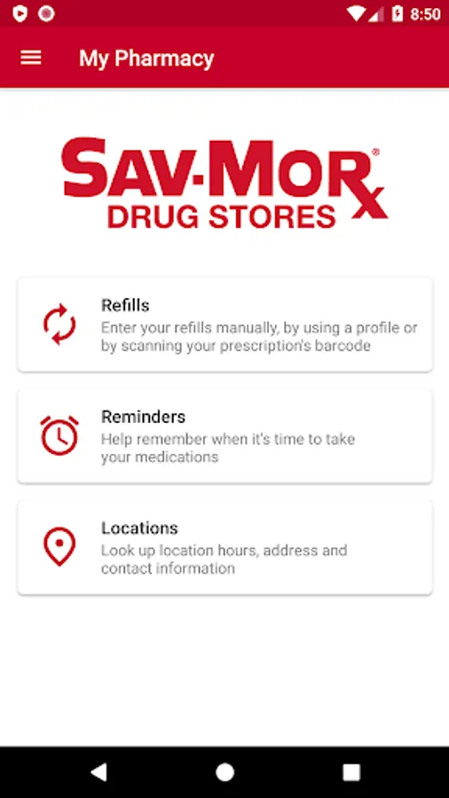 The Sav-Mor Drug Stores app allows you and your family to securely communicate with your local pharmacy. Refill your prescriptions with one click, get refill reminders, get discounts at your local pharmacy, get savings on brand drugs and access Pharmacist written pages that help you understand your condition or medications.