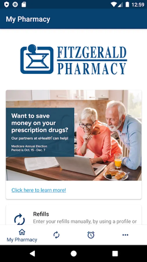 The Fitzgerald Pharmacy app allows you and your family to securely communicate with your local pharmacy. Refill your prescriptions with one click, get refill reminders, get discounts at your local pharmacy, get savings on brand drugs and access Pharmacist written pages that help you understand your condition or medications.