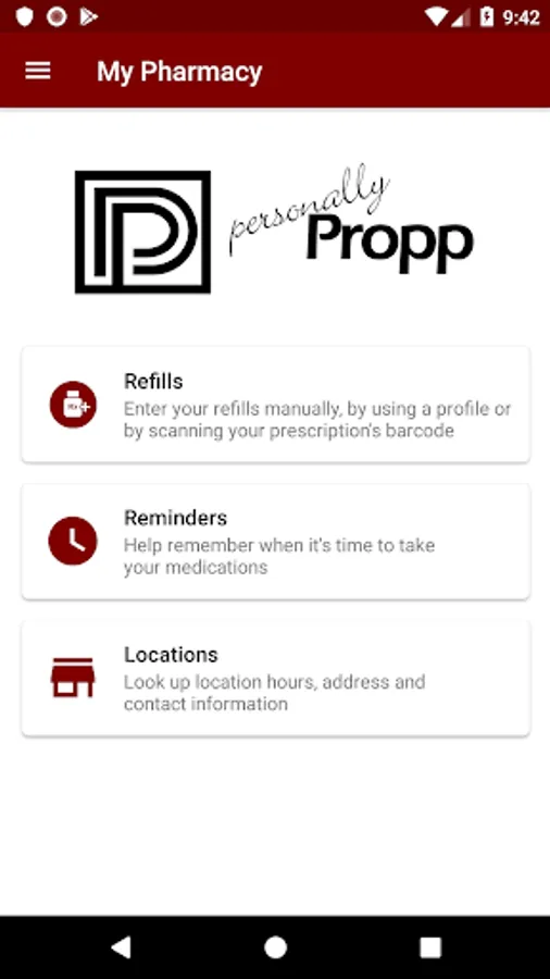The Propp Drugs app allows you and your family to securely communicate with your local pharmacy. Refill your prescriptions with one click, get refill reminders, get discounts at your local pharmacy, get savings on brand drugs and access Pharmacist written pages that help you understand your condition or medications.