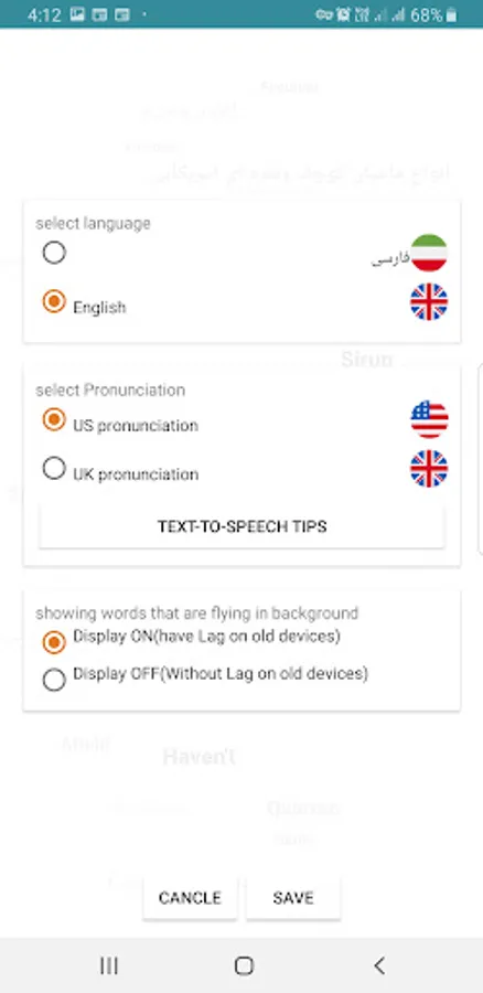 Ability to pronounce words (tts program must be installed)