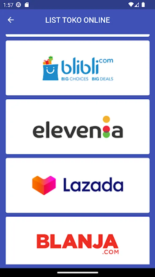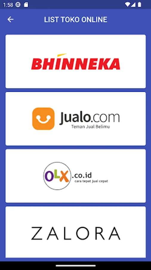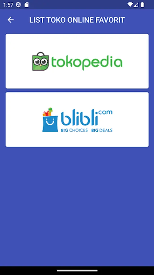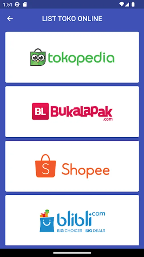 'Collection of Indonesian Online Stores in One Application' is an application to facilitate friends who often shop online without complicated. Namely with one Application, all Online Stores can be opened without the need to open the application / website one by one.