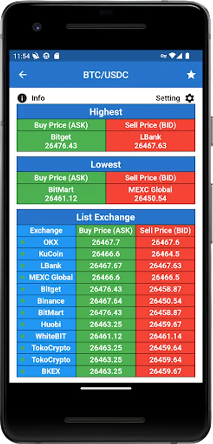 The "USD Coin Price All Exchanges" application is designed to provide an easy and fast user experience. Users can select the exchange they want to monitor and easily view USD Coin price data on each exchange directly. Additionally, this application also displays USD Coin price charts to help users monitor price trends and view the history of USD Coin price movements on each exchange.