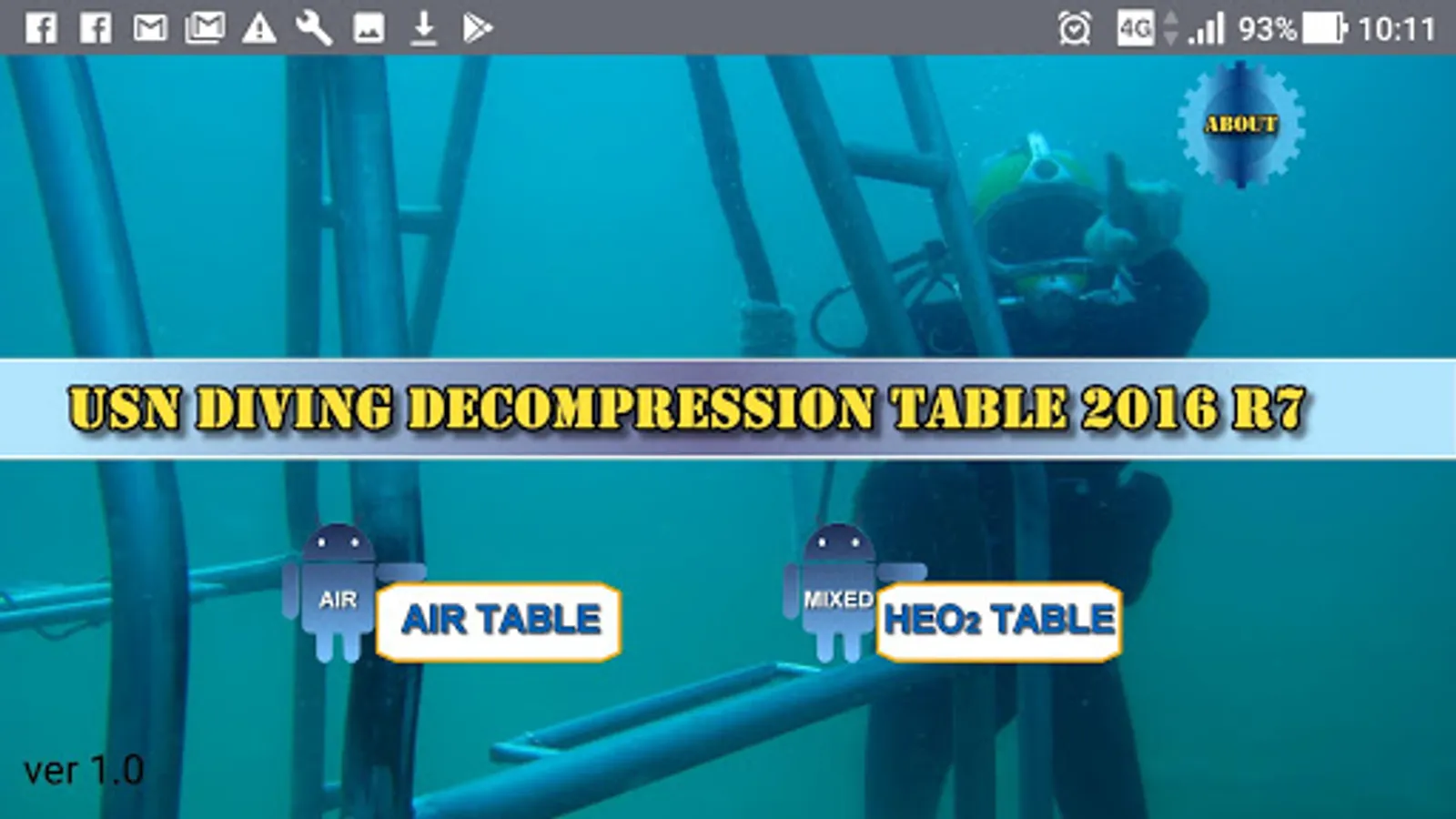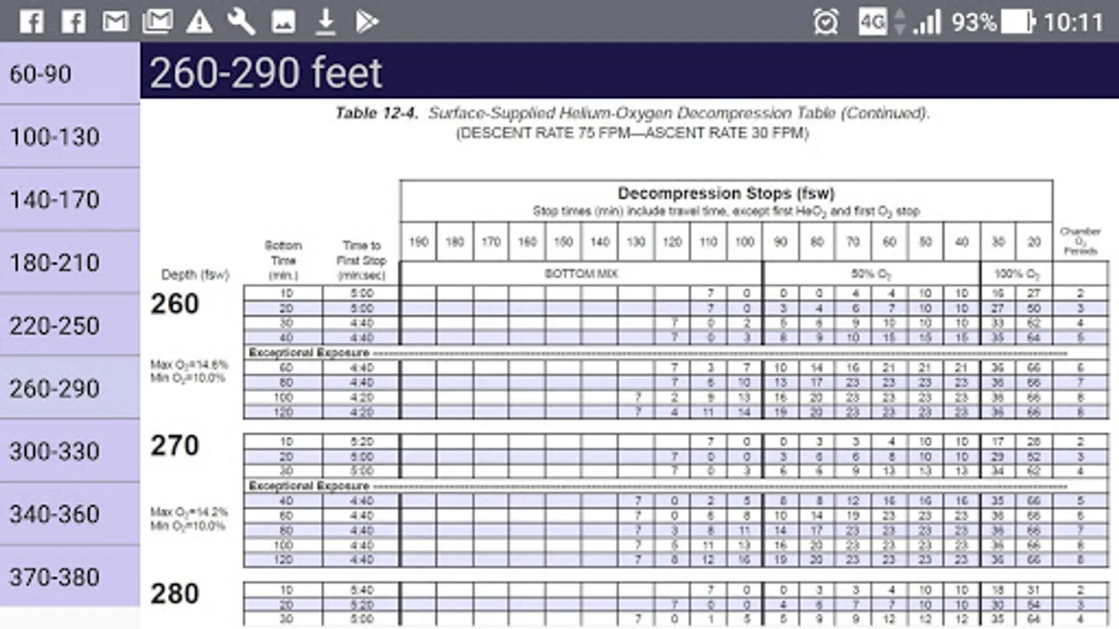 The Decompression Tables contain No-decompression table, air decompression tables and HeO2 mixed gas decompression table as provided in 2016 Revision 7 of the Diving Manual.