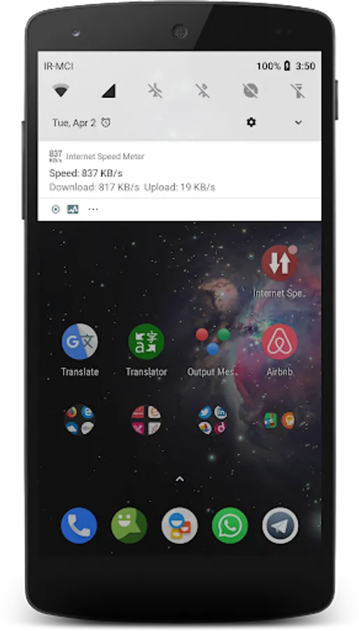 Internet Speed Meter (internet speed indicator) displays your internet speed in status bar. This helps you to monitor network connection anytime while using your device. It adds an indicator in your status bar that shows mobile data or WiFi speed. The Internet Speed Meter shows the current speed at which your internet is being used by other apps. The indicator updates in real-time showing the current speed at all time.