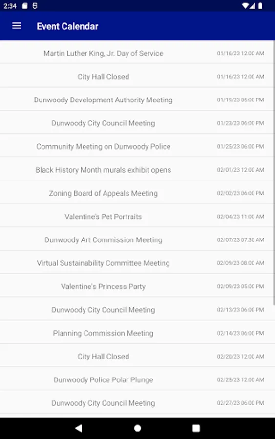 - View upcoming city events and easily add them to your calendar
