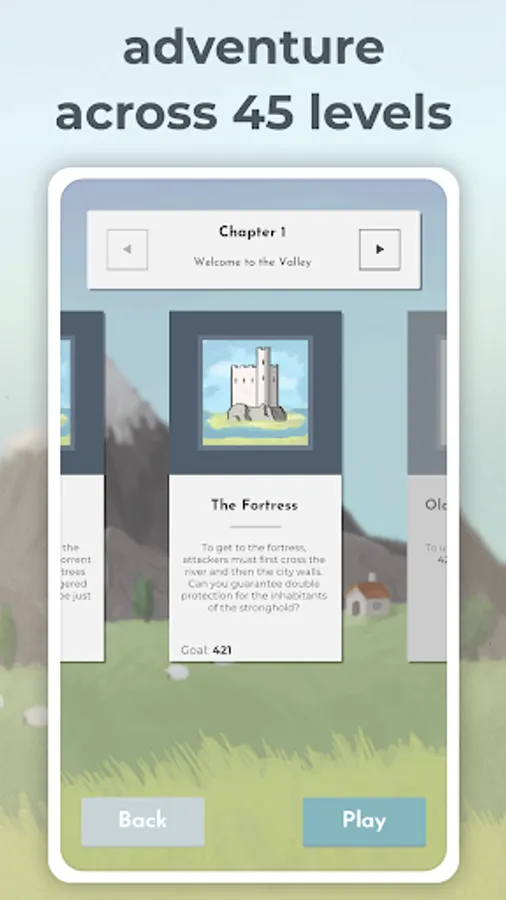 You'll play in three different chapters with a total of 45 levels. With each level you advance, you'll be offered more tiles and have more difficult obstacles to overcome. The journey starts with setting up fences and walls and then moves on to building plateaus, lakes, and even islands! It's no easy task, but we think you'll rise to the challenge! Once you've completed the levels, you can play them again to improve your score and compete in the leaderboards.