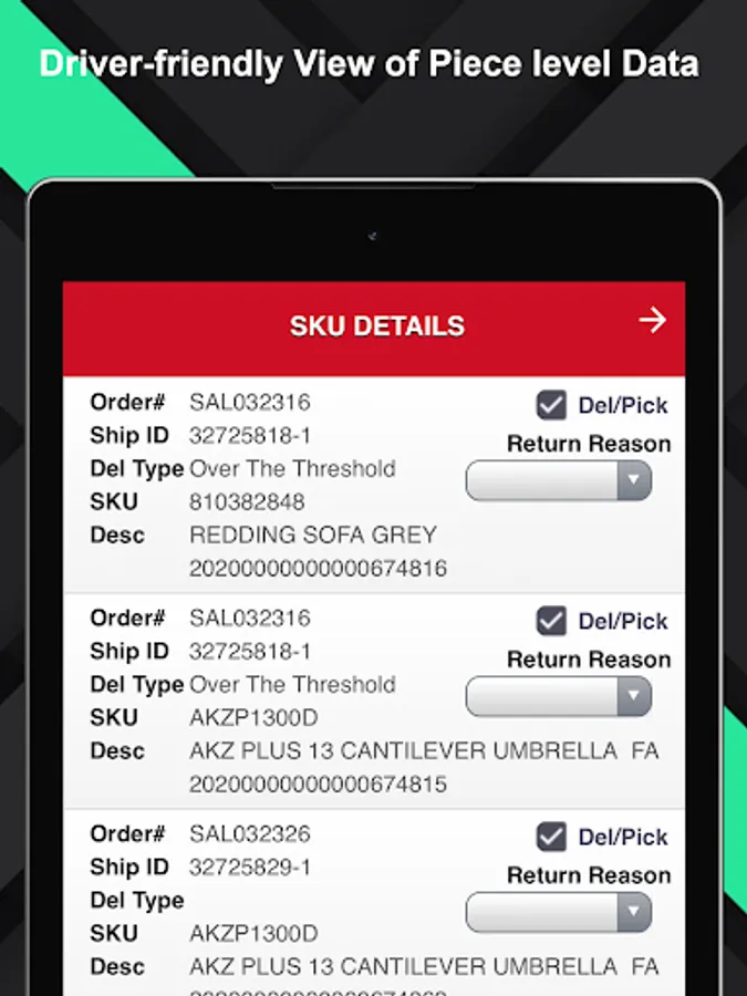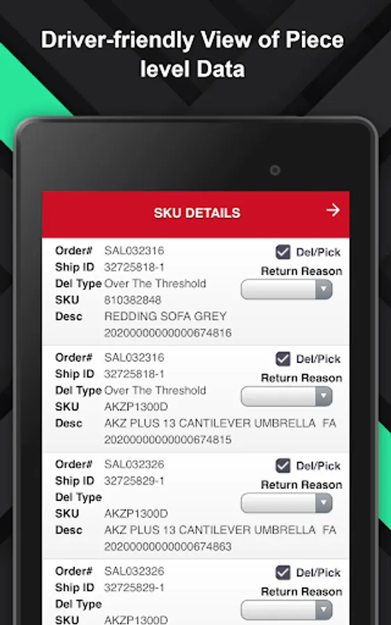 RyderView Driver puts you in the driver’s seat when it comes to managing your deliveries. The application improves route planning for all drivers by allowing you to send job statuses, start and finish times, and notes from the field to your officer manager. You’re also able to provide proof of delivery, pictures of delivered items, and complete custom form data.