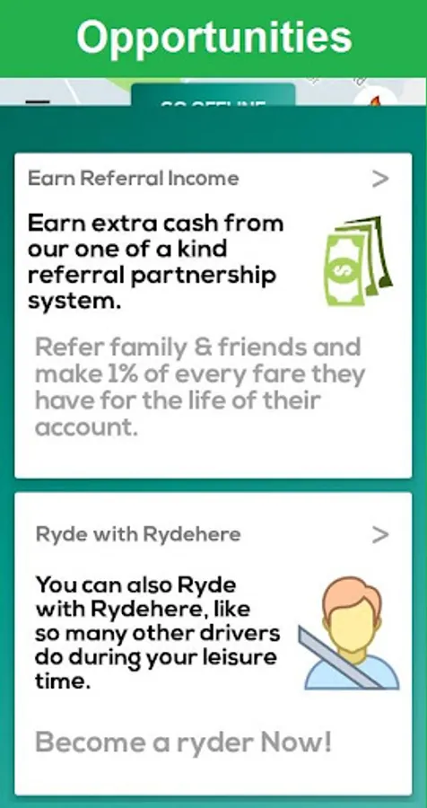 -With the Rydehere Driver you app can select the destinations you go to, while other apps