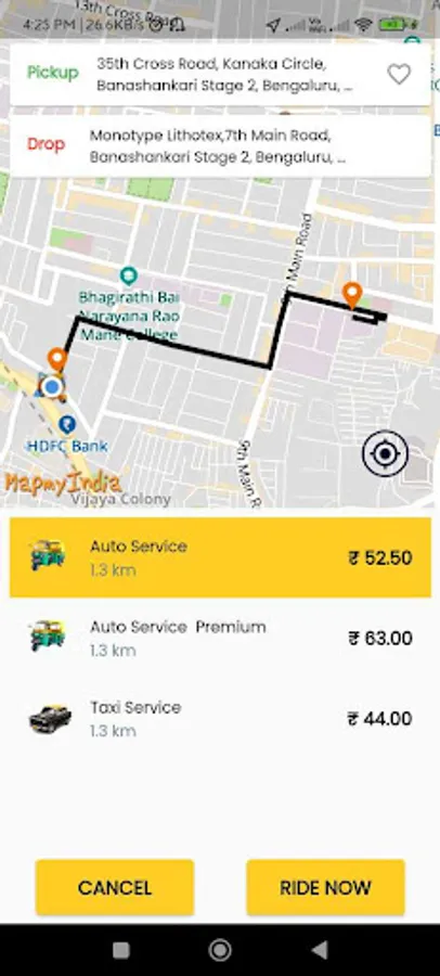 Low-cost to luxury Ride:No need to wait on the road to avail a ride. You can always request everyday Auto’s at everyday prices at the convenience of a click on the App right from your doorstep.