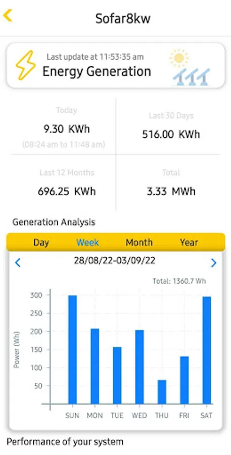 - How much energy your system should be generating vs actual energy generated on any given day