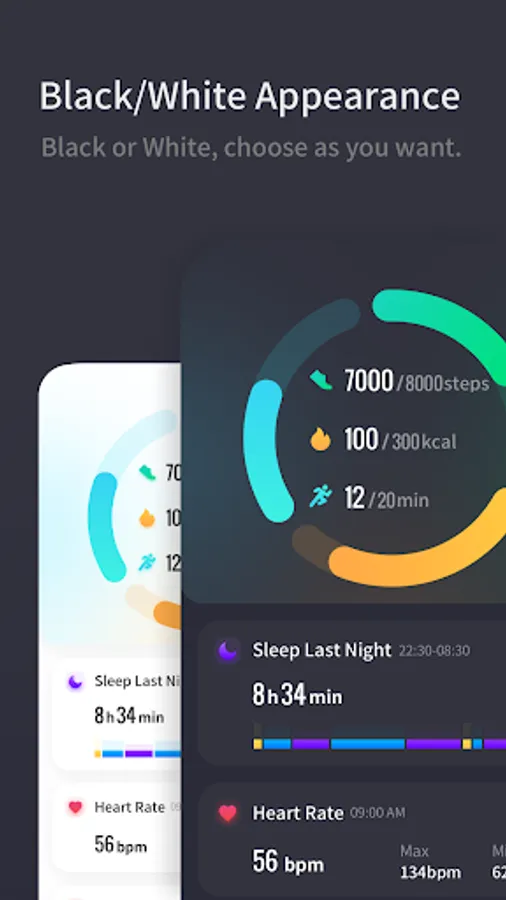 1) Based on self-developed sports&health algorithm, named HeyMotion, 24H Heartrate Monitoring, Blood Oxygen Detection and daily activity data recording.