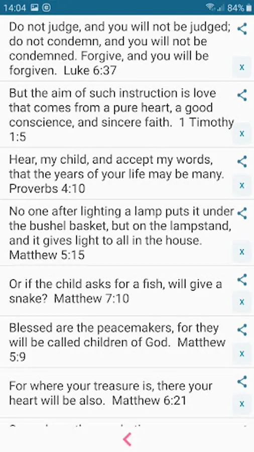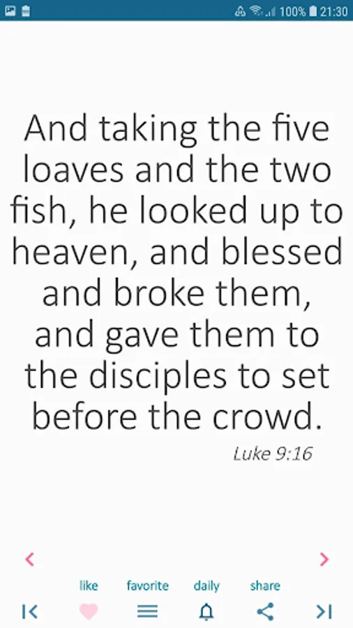 Don't forget that you can save your favorite Bible quotes by tapping the heart symbol. If you unlike and like a favorite quote again, it will go to the top of the favorites list.