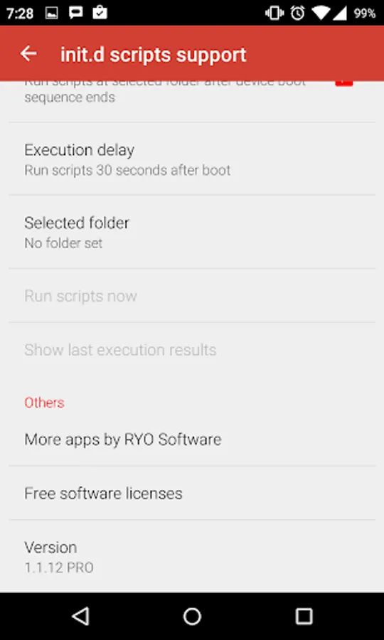 This app allows the user to select a folder (at sdcard) that includes a serie of scripts that can be executed at boot time.