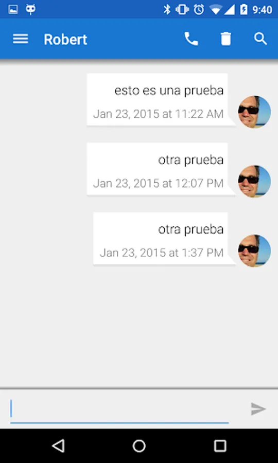 Note that Android versions since KitKat (4.4) defines a messenger manager that is the only that can write the messages database system. We implement it only to have the ability to write this database. This means that the app appears in the list of applications that can be selected as default messaging application. Please do not select our app to that effect, as not incorporate management for incoming messages and stop receiving SMS, MMS and any other message that depend on this service.