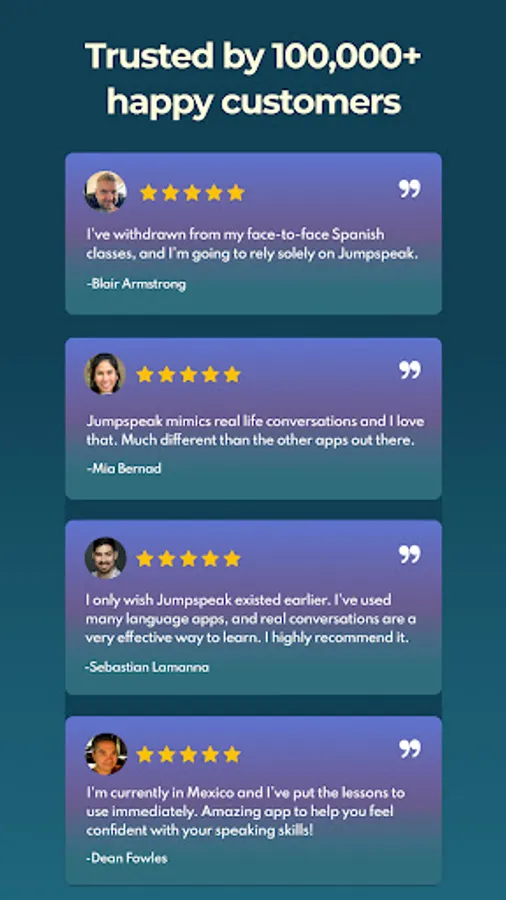 Want to learn a language fast? With our immersive language learning method, you can learn Spanish, French, German, Korean, Japanese and 9+ languages by speaking confidently in real-life conversations. Join 100,000+ students who trust Jumpspeak's language lessons designed by top language learning experts.