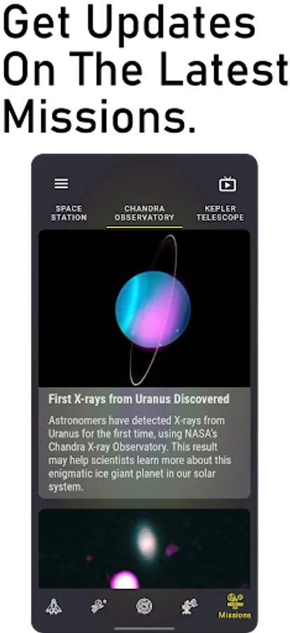 ■ Get the weekly reports from all the missions including the space station, where you can have an in depth understanding of the research projects being conducted in space.