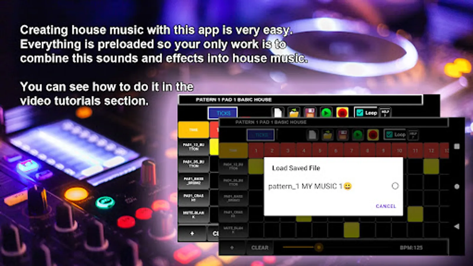 Creating house music with this app is very easy. Everything is preloaded so your only work is to combine this sounds and effects into house music. You can see how to do it in the video tutorials section.