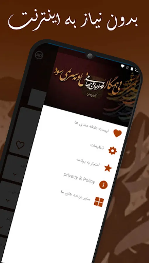امکانات برنامه اشعار مولانا جلال الدین بلخی: