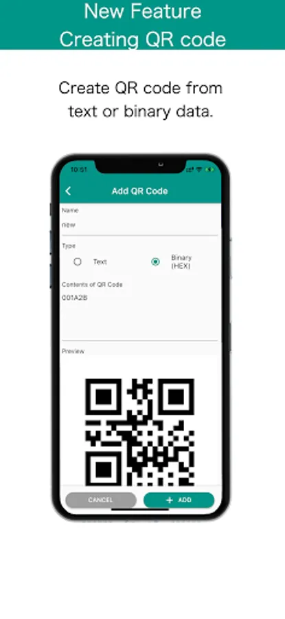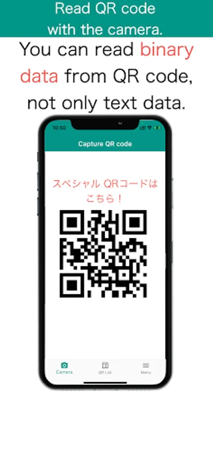 QRefine can read binary data from QR code though most of QR code reader read text data.