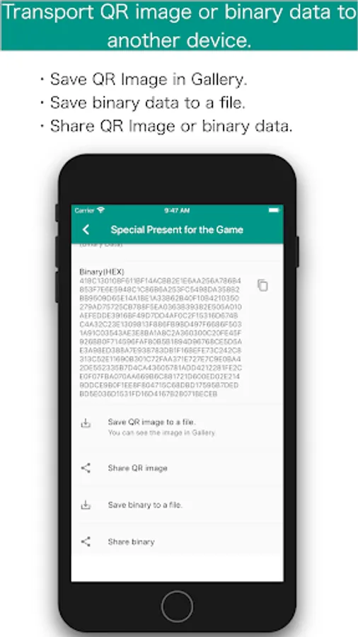 QRefine can read original binary data from QR code, even if it is for a certain application on a certain device.