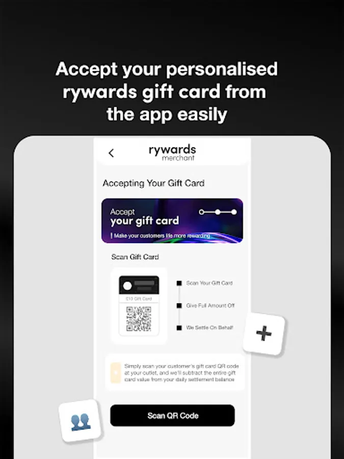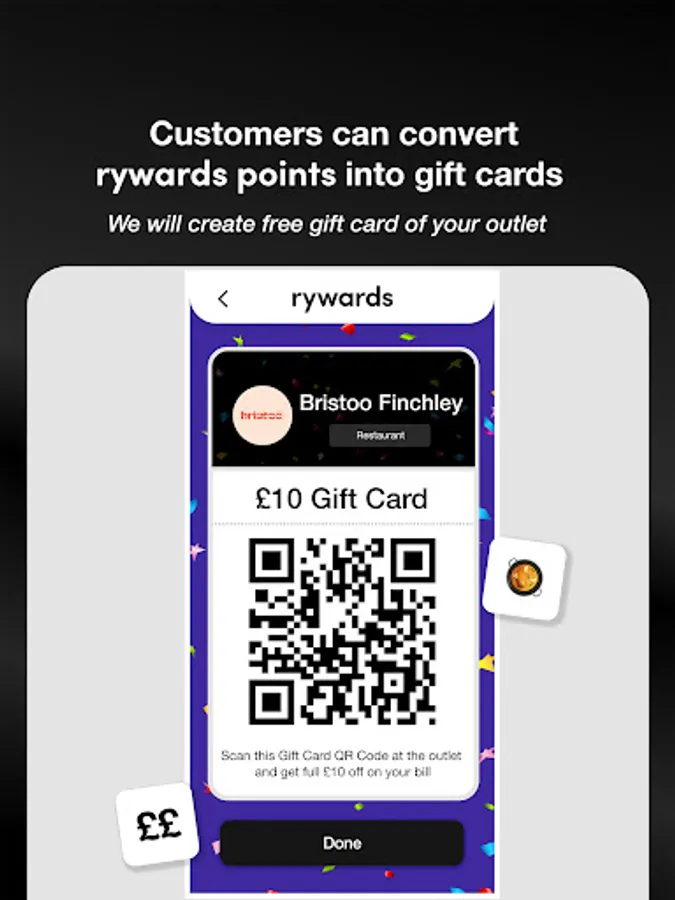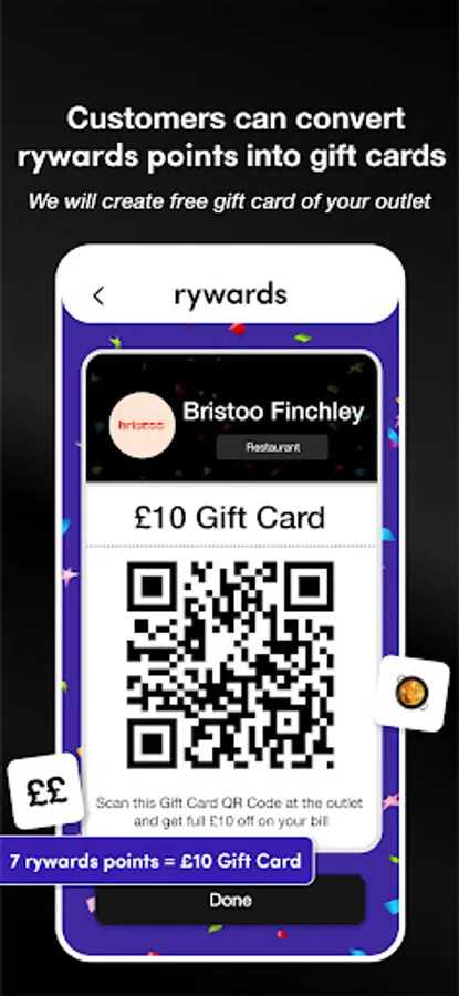 Personalized Merchant Gift Cards: Offer personalized gift cards created by Rywards to your customers. Customers can convert their accumulated Rywards points into a tailored gift card specific to your outlet.