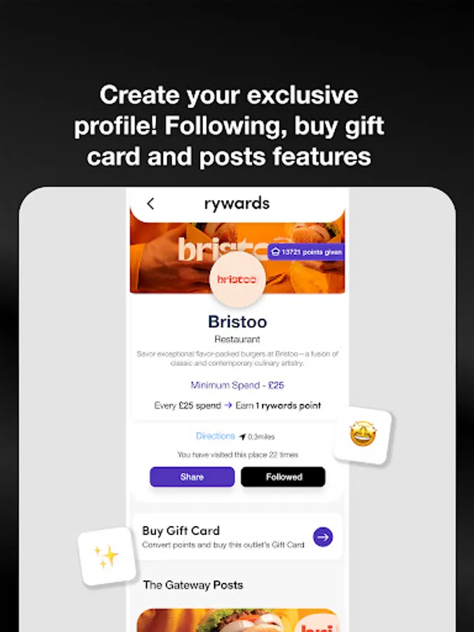 Custom Merchant Profile: Showcase your business details, categories, and minimum spend requirements on your custom merchant profile. Customers can easily access this information and even purchase gift cards directly from your profile.