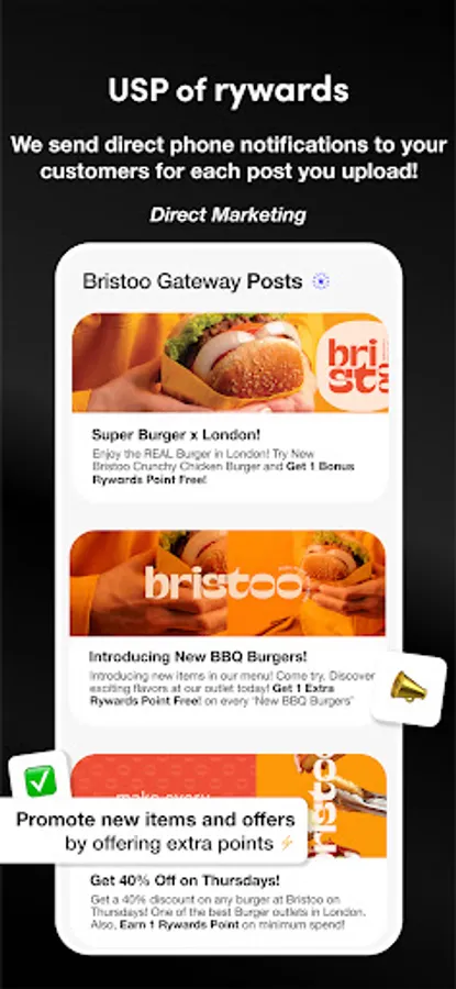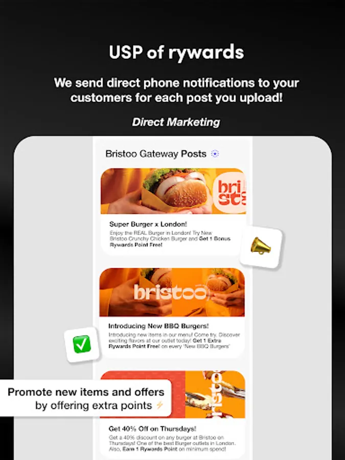 Powerful Posts Feature: Engage with your customers directly through the app's posts feature. Create marketing and promotional posts to inform them about special offers, new items, or exclusive deals. Reach your actual customers with direct phone notifications, ensuring effective and targeted marketing.